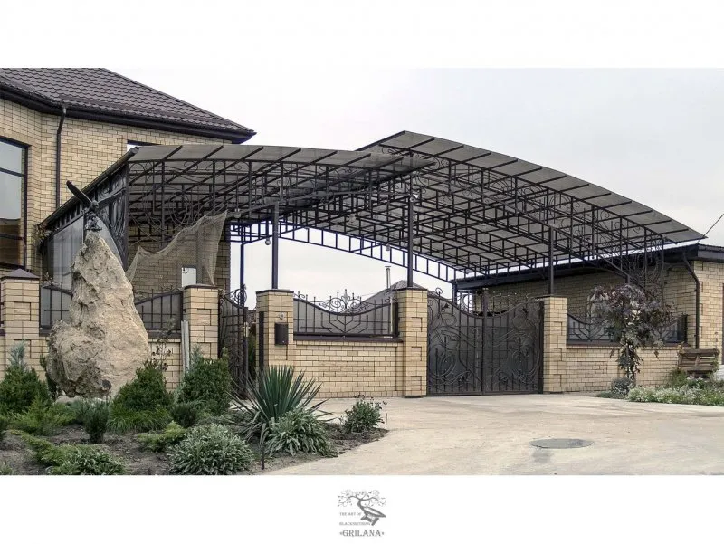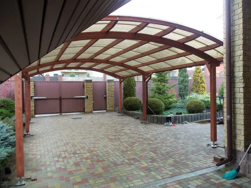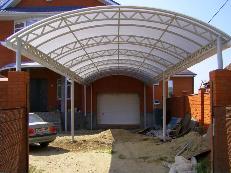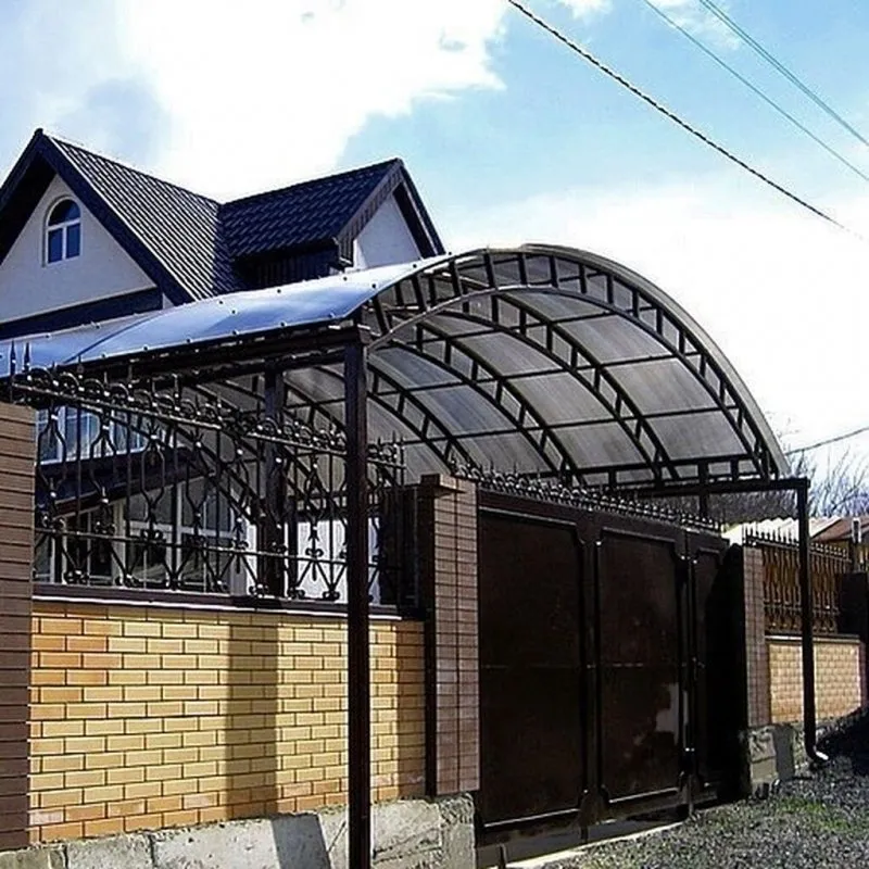Арочные навесы: это конструкции, которые имеют форму арки и устанавливаются над крыльцом или террасой. Они могут быть выполнены как из металла, так и из других материалов и обеспечивают защиту от солнца и дождя.