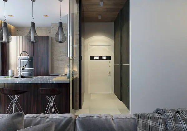 Красиво смотрятся различные бра и подвесные торшеры. Важную роль в оформлении прихожей играет правильная организация пространства. Если позволяет место, то шкаф-купе прекрасно справится с функцией хранения вещей. Не стоит забывать и о дверях, которые ведут из прихожей в другие помещения. Обычно их оформляют и декорируют одинаково, в соответствии со стилем и цветовой гаммой в прихожей. Очень часто дверь имеет двойной декор: одного вида со стороны прихожей и совершенно другого со стороны комнаты. Это выглядит очень интересно, особенно, если стиль двухкомнатной квартиры предполагает четкое разделение по цветам.