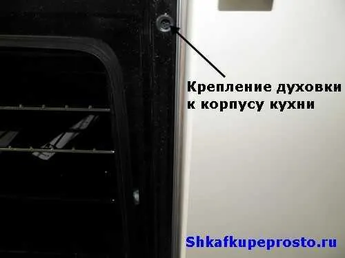 - Далее духовка прикручивается к боковым стенкам установочного шкафчика или к дополнительным деревянным планкам, закрепленным на стенках соседних кухонных тумбочек.