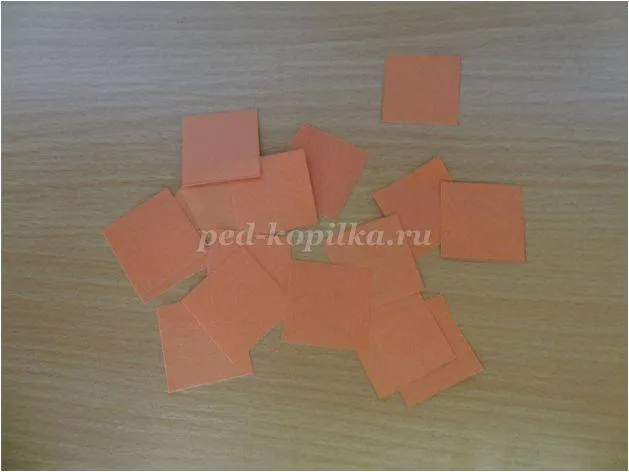 3. Из полученных геометрических фигур собрать и склеить «кулечки». Каждый квадрат сворачиваем вокруг указательного пальца по диагонали и склеиваем.