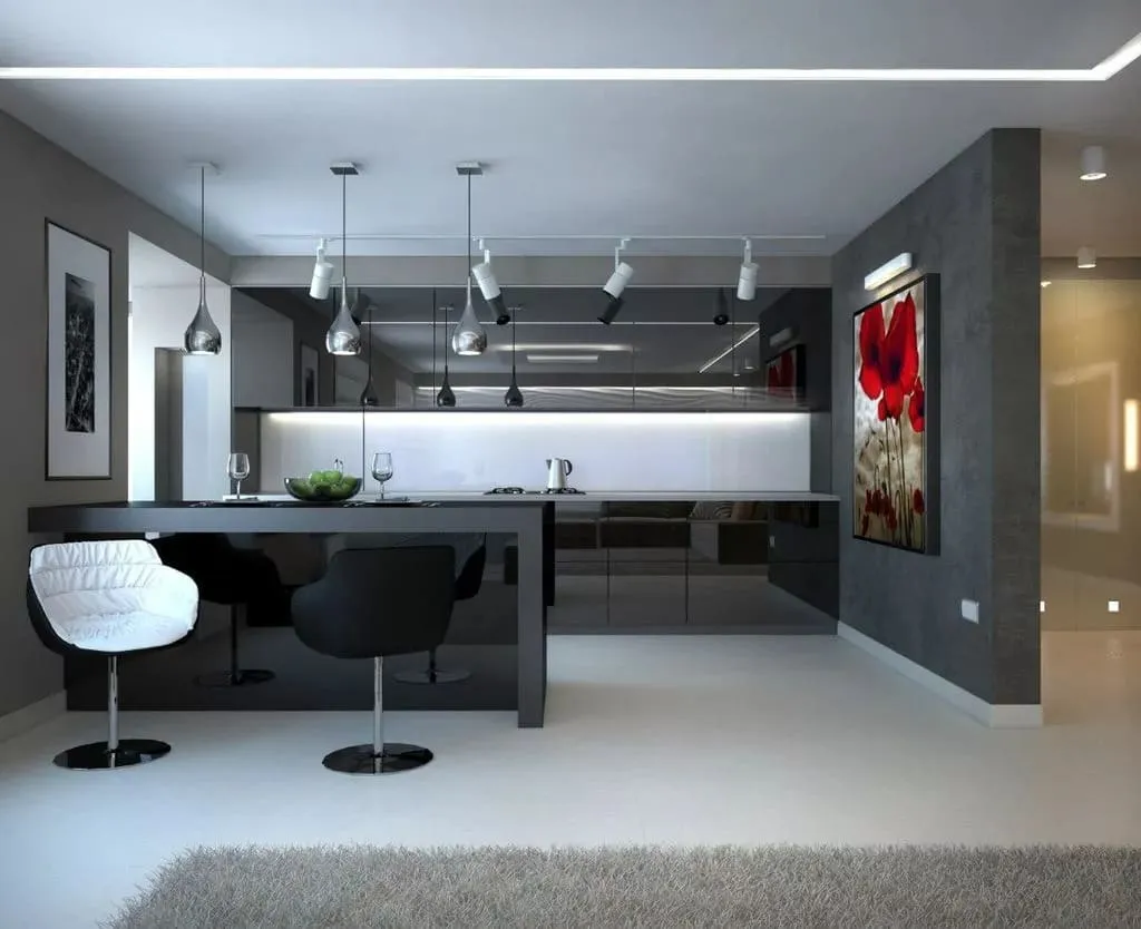 Название второго говорит само за себя — всё современное и побольше, максимум пластика, неоновой подсветки и хромированных деталей. Часто такой стиль сочетают с установкой систем «умный дом». Для молодой семьи лучше всего подойдет классический стиль.