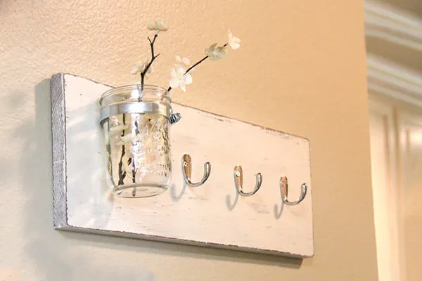 Выглядит интересно и неординарно, ведь не часто на вешалке увидишь вазочку с цветами.