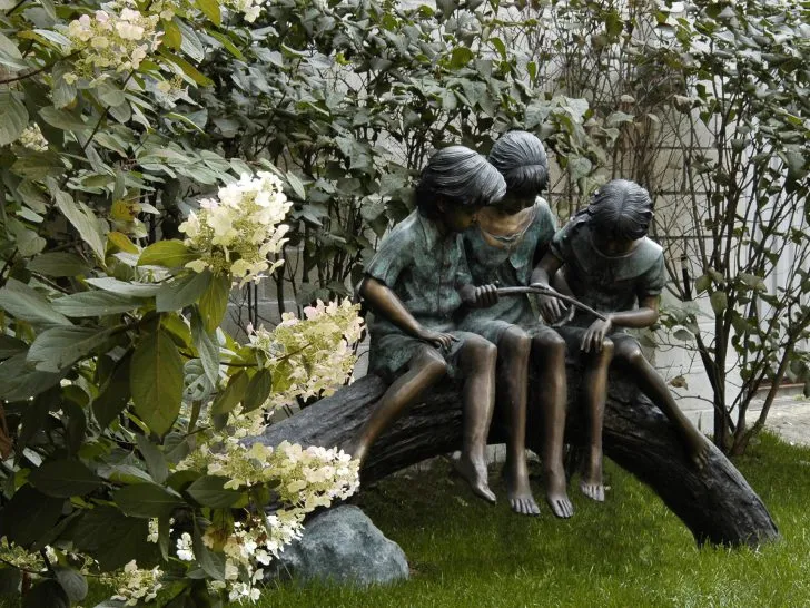 - Еще одно дополнительное увеличение можно получить, используя садовые дорожки. Для этого по их длине устанавливают небольшие, но яркие фигуры, скульптуры, создают зоны отдыха. Эти миниатюрные островки расширяют восприятие пространства и увеличивают его границы.