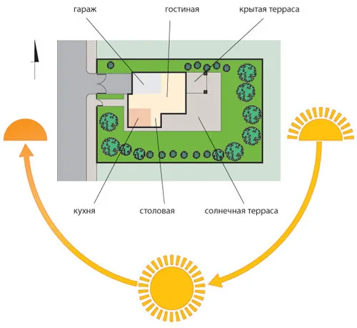 - Как было выше объяснено, жилье должно стоять на северной стороне участка, чтобы не образовывать тень и не мешать расти зеленым насаждениям.
