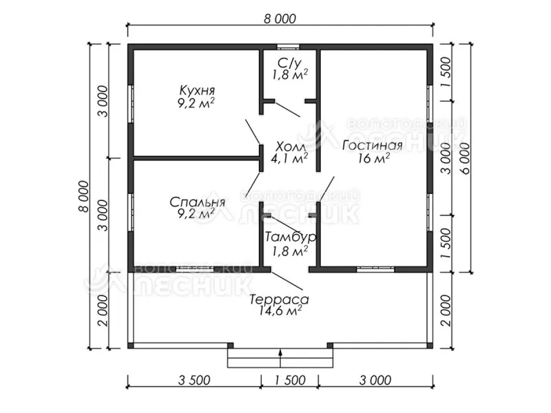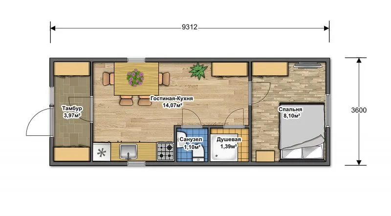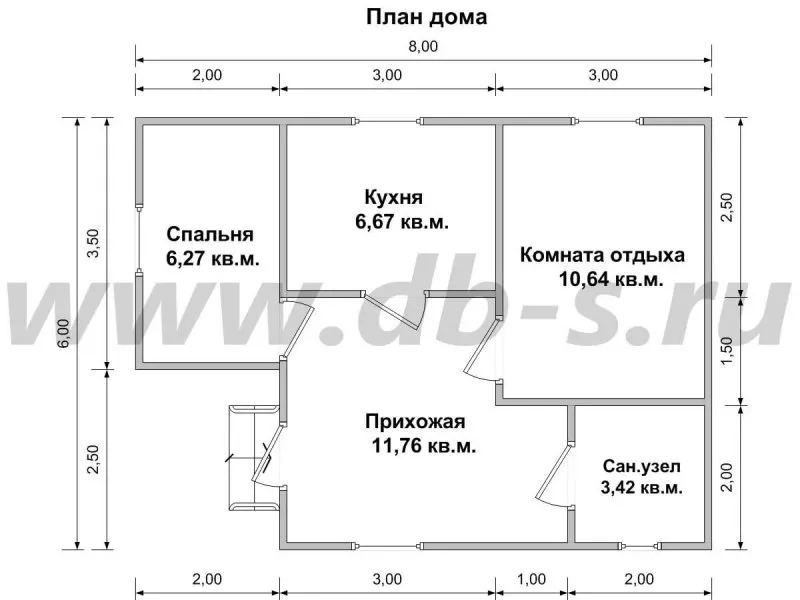 Планировка дома 6 на 8 одноэтажный деревянный дом