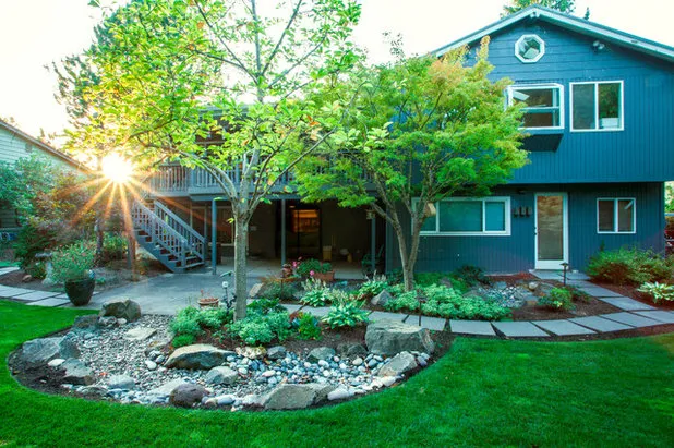 Размещая дом на участке, примыкающем к реке, изучите ее «поведение» в течение года: границы во время паводка, устойчивость берегов. Зачастую желание построить дом на самом берегу оказывается не лучшим выбором, несмотря на потрясающий вид. Пруд или озеро, расположенные на участке, тоже потребуют серьезного изучения. Но при разумной планировке они помогут организовать эффективный дренаж. Повторюсь, для сложных земель консультация специалистов необходима.