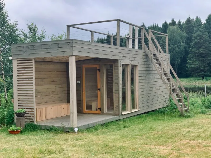 Баня из профилированного бруса 150х150 с односкатной крышей