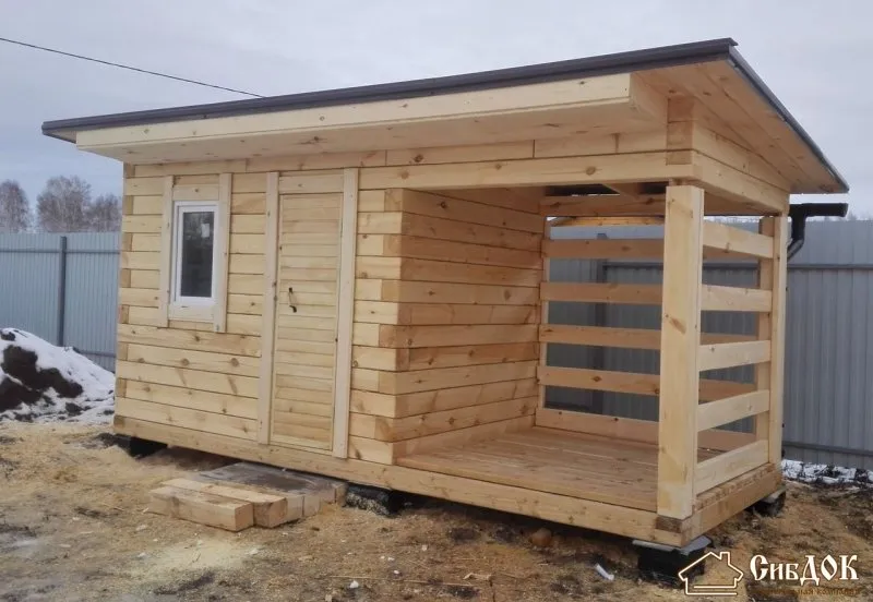 Баня из бруса 100х150 3 на 4 с односкатной крышей